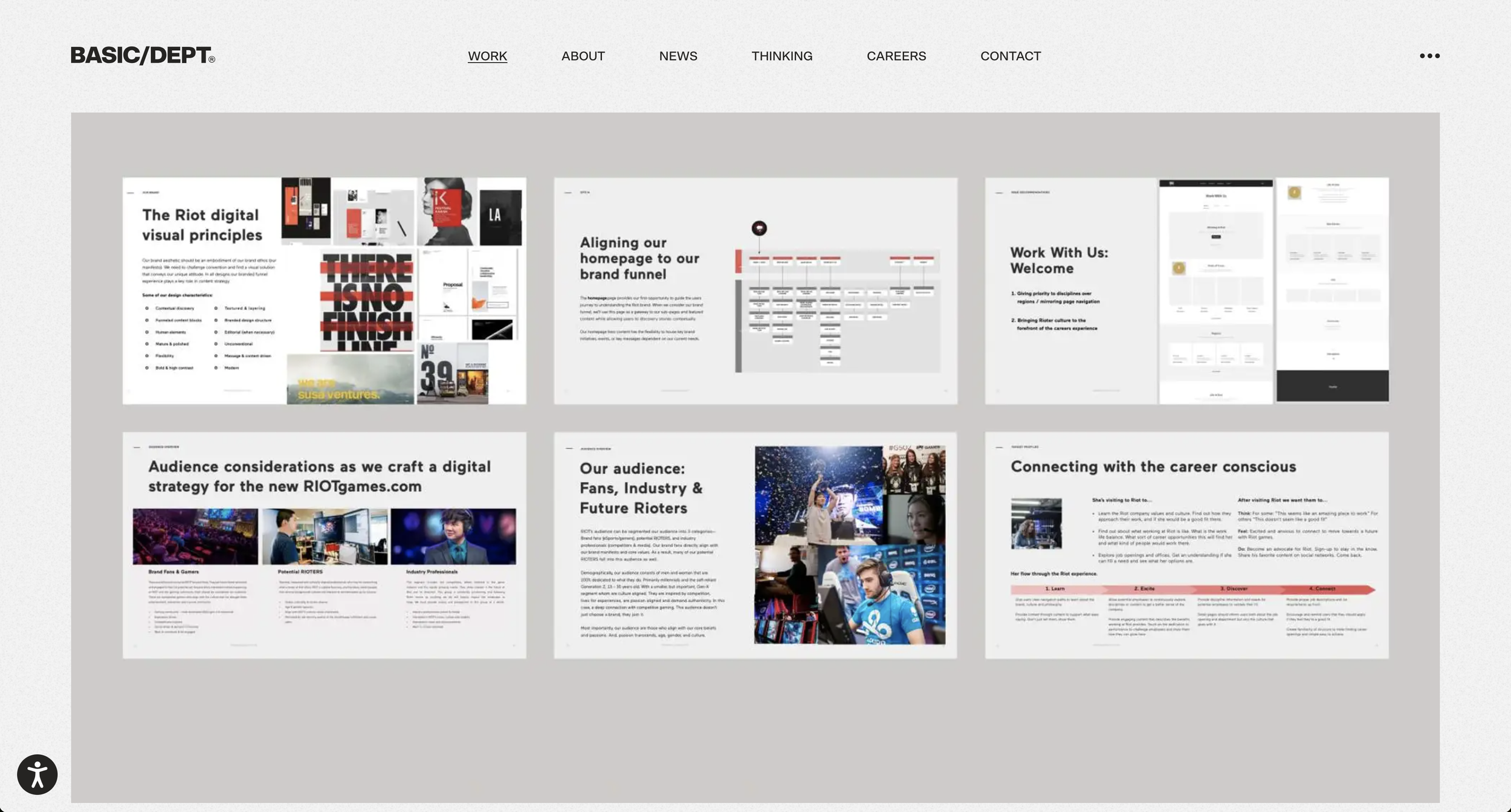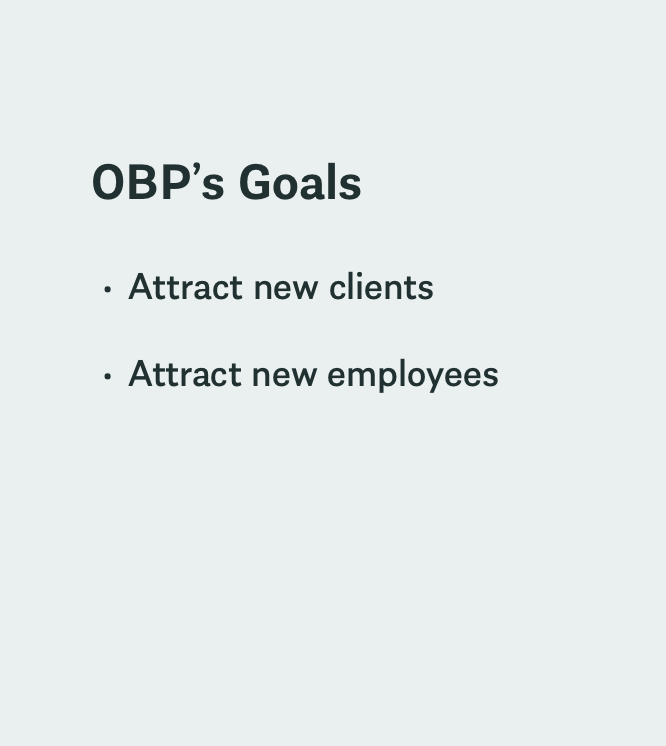 OBP is a full service advertising agency that relaunched its website in 2023 as part of its 35th anniversary celebration. Like many websites launching a product under a time limit, OBP decided to launch the minimum viable product. This meant that important features such as the work landing page (and the case studies that page linked out to) were left incomplete. As OBP’s primary goals at the time were attracting new clients and talent (i.e., expanding its workforce) - redesigning these pages in a timely manner was a priority.