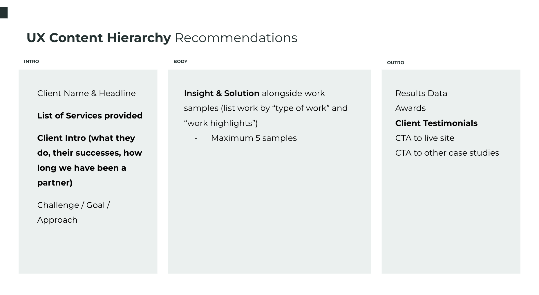 UX Case Study Content Hierarchy & Wires