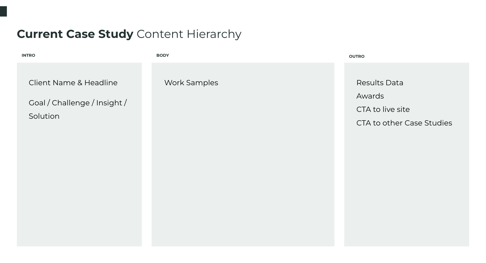 To help stakeholders get a better understanding of how the new content strategy would work, I redesigned a case study that is currently on OBP’s site using the above content hierarchy recommendations.